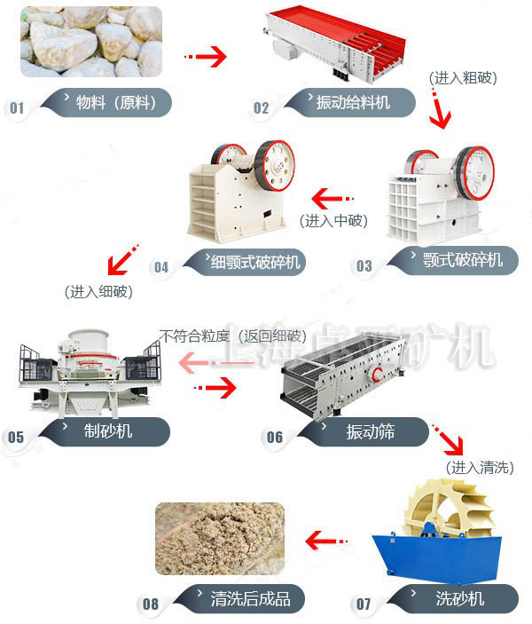 ,其它配套设备可能还会用到除尘器、洗石机、选粉机、包装、废水处理设施等等。不过由于用户加工标准不同,原料的尺寸和硬度等属性也不同,具体的设备配置会存在差异。